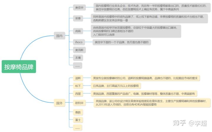 国内品牌有:奥佳华、荣泰、荣康、艾利斯特、本博、尚铭、ihoco、摩摩哒、奥克斯、海尔等。