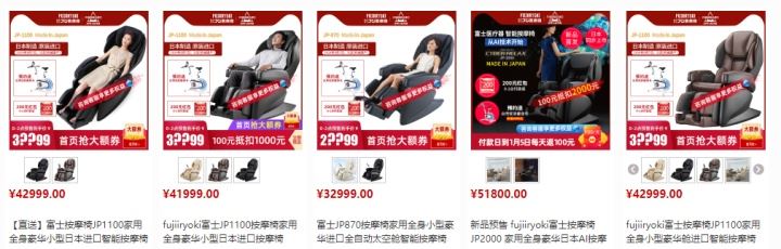 大家熟知的日本品牌,而且为什么第一个讲富士呢?因为第一台按摩椅就是他们家造的,1954年做了一个台木制的按摩椅,现在的很多按摩椅概念也都是他们家先弄出来的,包括气压、3D按摩、4D按摩等。但是……是真的,真的,很贵……天猫旗舰店进去,低消3W起,而且全是S导轨设计,京东比较便宜的款式活动价也在2W多,这个定价就劝退很多人了。