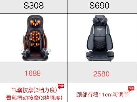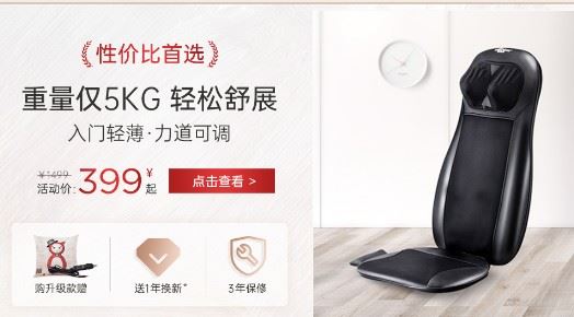 同样是一个按摩椅大品牌,这款属于性价比款,功能比较均衡,3大智能模式,颈背捶揉,气囊夹臀,
