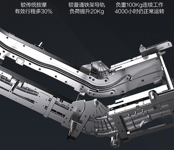柔性导轨是荣泰创新的新导轨,是在周杰伦十二新作销量SL型导轨上做的一个升级。SL导轨展开角度为初始角度112.5度,而柔性导轨展开最大角度可达165.5度。展开角度更大,有效按摩面积较常规SL导轨多出30%,从头部覆盖到大腿根部。在拉筋状态下,通过腿部气囊包裹下拉,导轨下躺打开更大角度,全身筋脉通过拉伸舒缓,提升气血循环,可缓解腰酸背疼等。