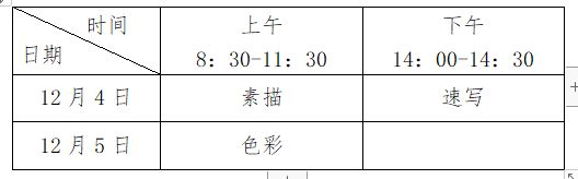 美术与设计类专业省统考安排在 2021年12月4日-5日进行,各科目考试时间具体安排如下: