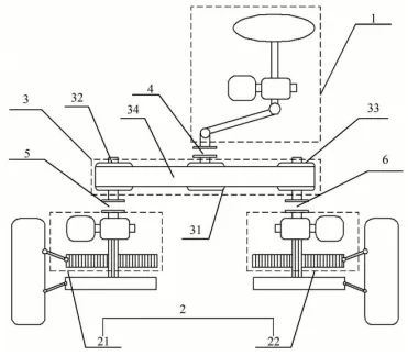 下转向系统包括左前轮转向子系统和右前轮转向子系统,是指左前轮和右前轮的转向执行机构。