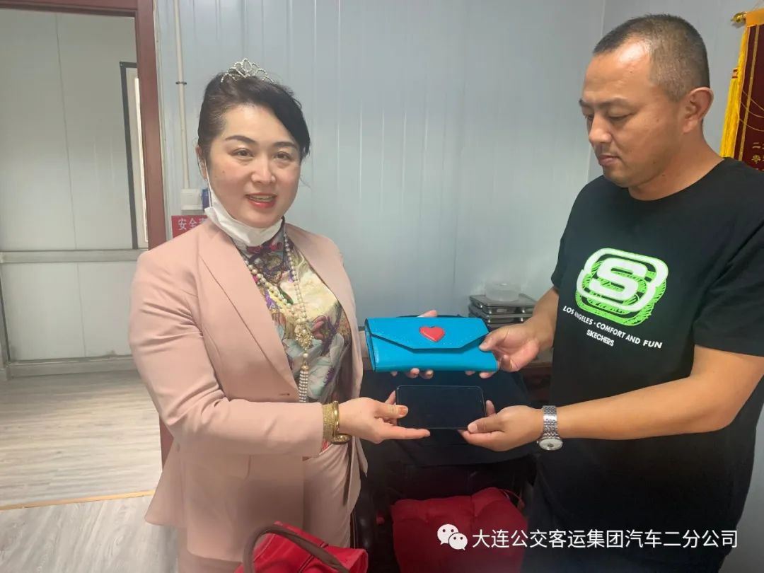 原来失主李女士有两部手机,管理人员拨打电话时她正在开发区的朋友家做客,当管理人员说明缘由后,她才意识到手机和钱包已经丢失了。放下电话后,李女士立即打车赶往钻石湾车队,并从车队人员手中接过失而复得的钱包。(如图)