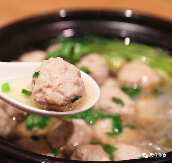4、关小火,让汤保持微开状态,将肉馅放于左手中从虎口往外挤出丸子,右手用勺子接住然后下入汤锅中(或者用勺子挖出丸子的形状),依样,将丸子全部下入锅中。