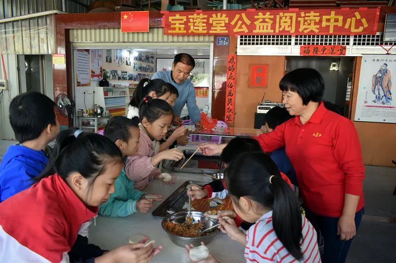 爱心厨师陈振发和部分家长,耐心地教包水饺,小学员们虽然包得不好看,但还是兴趣盎然……