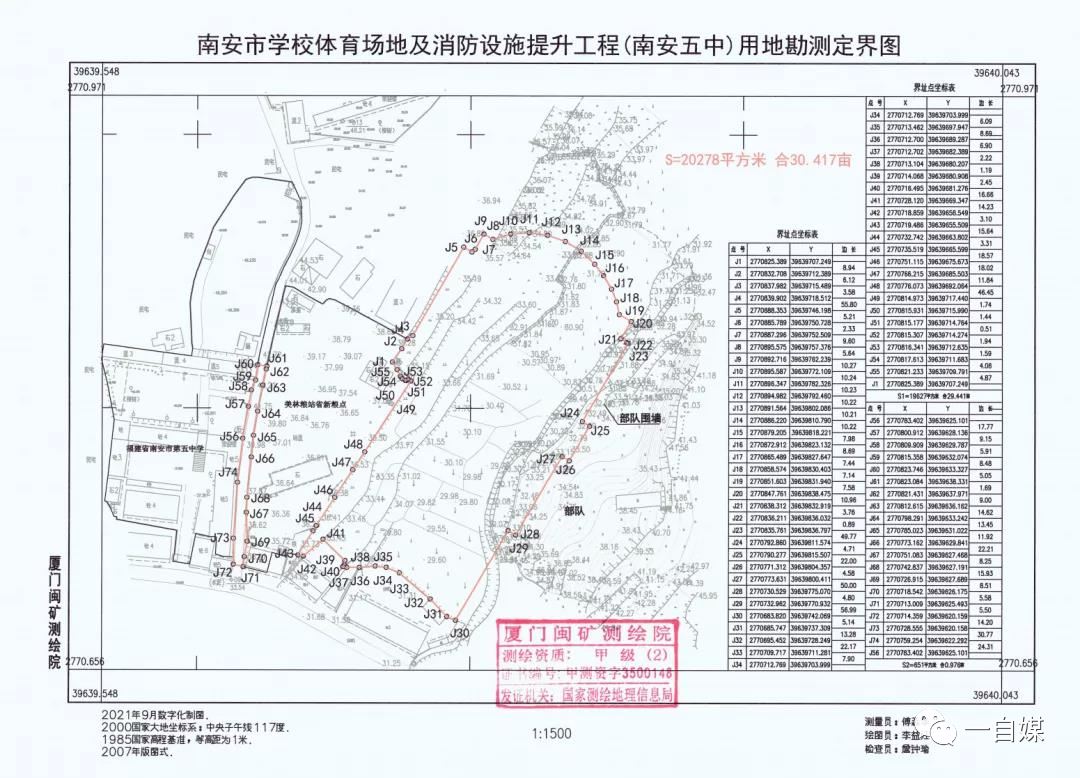 附:南安市学校体育场地及消防设施提升工程(南安五中)用地勘测定界图