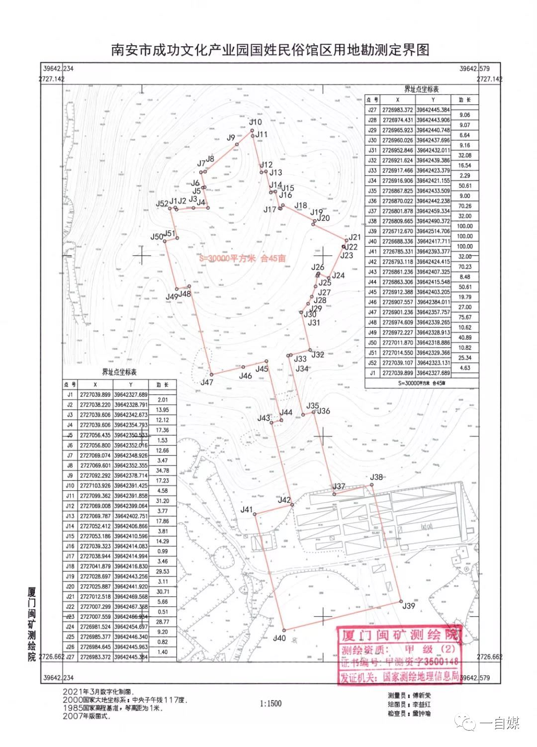附:南安市成功文化产业园国姓民俗馆区用地勘测定界图