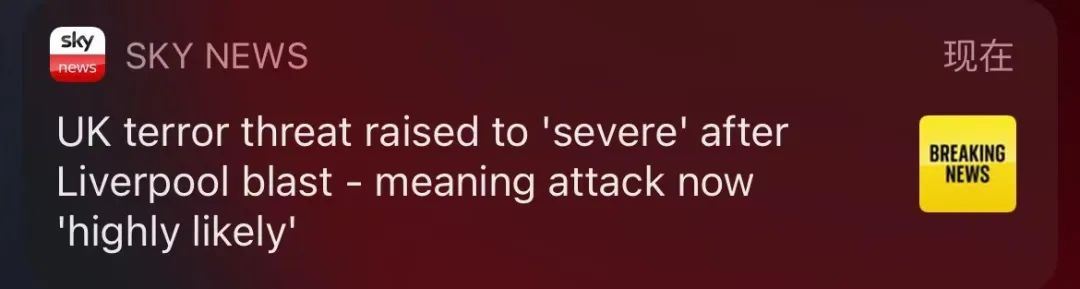 据英媒报道,英国周日发生一起自杀式恐怖袭击。随后,英国政府刚刚宣布调高恐袭威胁等级,从“显著”升级为“严重”,这意味着英国“极有可能”遭到恐怖袭击。