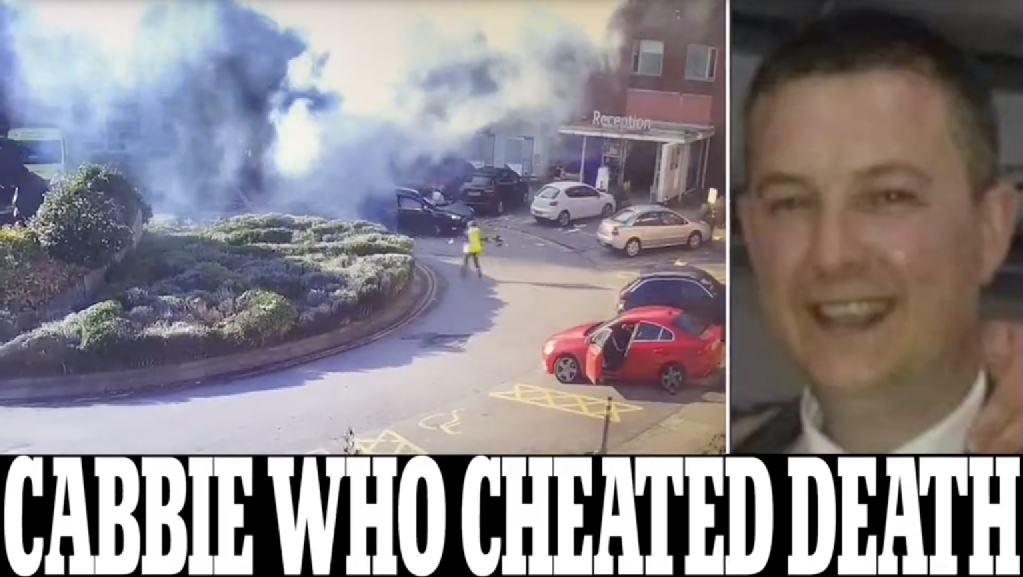 现场监控录像拍到的视频显示,车租车司机曾与死神擦肩而过,在他从车上逃脱后不到1分钟的时间,出租车就被猛烈火势吞没,所幸他最终死里逃生。