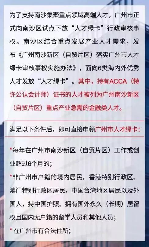将ACCA会员列为紧缺金融人才。ACCA会员可直接申请广州市(家庭)绿卡,享受住房、购车、子女上学优惠政策和技能培训补贴等。