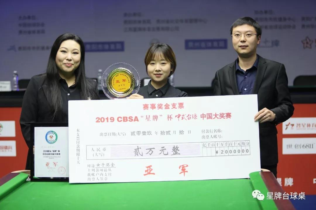 中国台球协会副秘书长唐旭;贵州省社会体育治理中间副主任朱四新;贵阳;,市市平易近健身中间主任肖虹;中国台𧂙ɰ;。599;、球协会中国式台球项目委员会副主任、星牌体育赛事总监王新月及贵州省台球协会秘书长、贵州华光智星体育文化有限公司董事长寇思翔出席弊端 弊端式,并为获得男女子组冠亚军的球员颁奖。