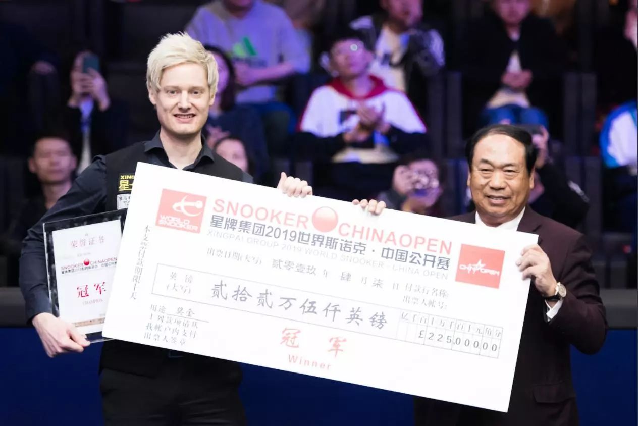星牌团体2019世界斯诺克中国公开赛4月7日在国度奥林匹克体育中间体育馆美满落幕。在出色而剧烈的7天时光里,来自全世界的72名顶尖选手奋力鏖战71场,最终尼尔·罗伯逊以11:4的比分克服杰克·利索夫斯基,一举独揽22.5万英镑冠军奖金,为这届赛事画上了美满的句号。