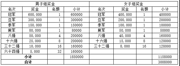 11.1竞赛总奖金300.8万元(单元:国民币),个中: