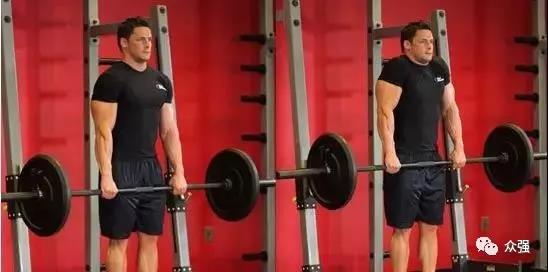 在奥林匹克杠铃两边加上一些20公斤重的盘片,直至到达你的极限并可以做耸肩动作——没有什么器械能像杠铃如许可以更有用地