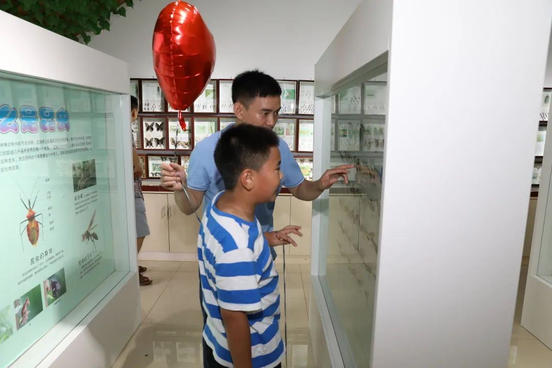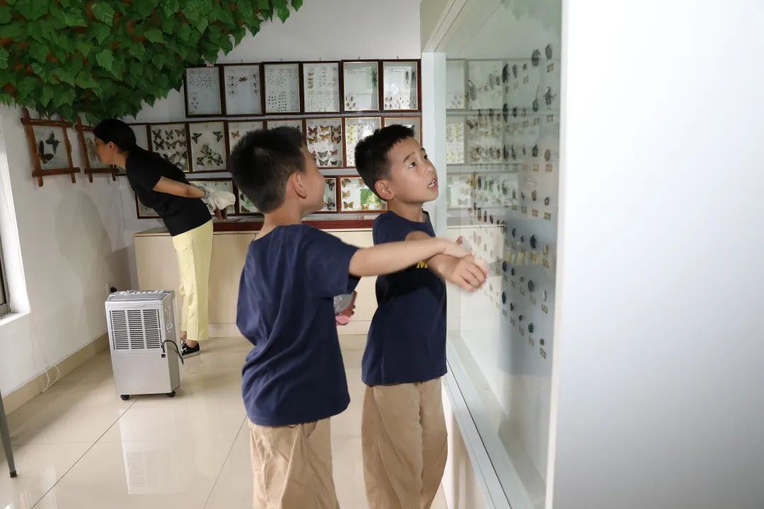 在奉贤区青少年野生动物科普基地,小朋友们参观了狗獾标本、昆虫、蝴蝶等野生动物标本。