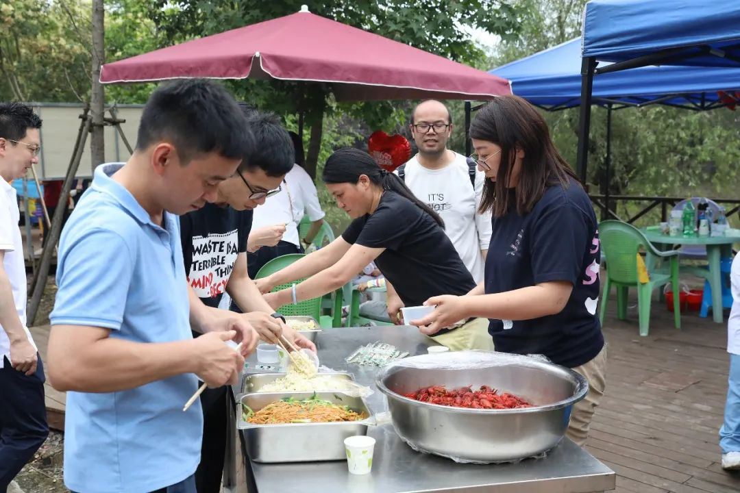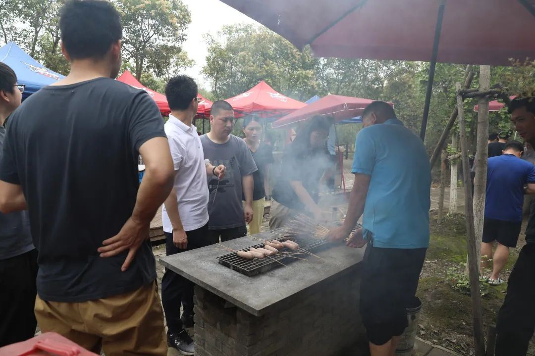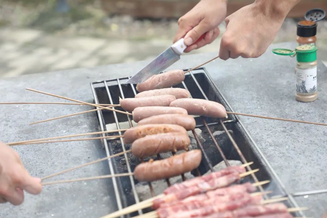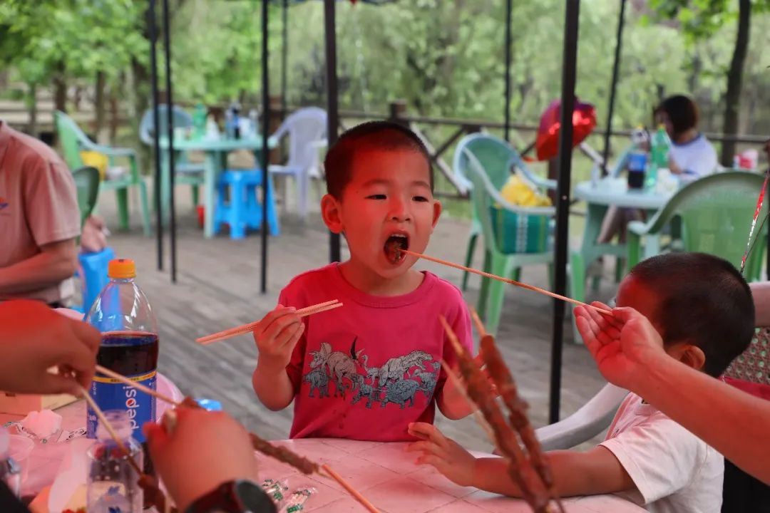 家长们用出自己的十八般厨艺,在烧烤架上对食材进行加工。香肠、牛肉串、骨肉相连等等经过了家长们的双手变成了一道道美食进入了小朋友的口中。随后又品尝自己钓的小龙虾,别有一番风味。