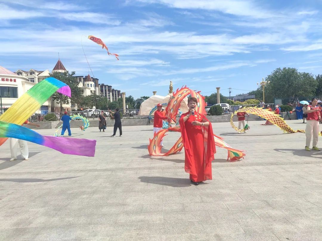 来自全镇的一百多名健身志愿者参加展示活动,吸引了众多居民前来观看。大型舞龙《中国龙舞起来》、太极剑表演、歌曲《草原之夜》、舞蹈《社会主义好》、京剧清唱《绣红旗》、广场舞《今天是你的生日我的中国》、歌曲《少年壮志不言愁》、太极功夫扇《中国功夫》等节目好戏连台,他们精神饱满、动作整齐,展现春玉手出了大张庄镇党员群众乐观向上、积极进取的时代风采,引得现场观众连连称赞。