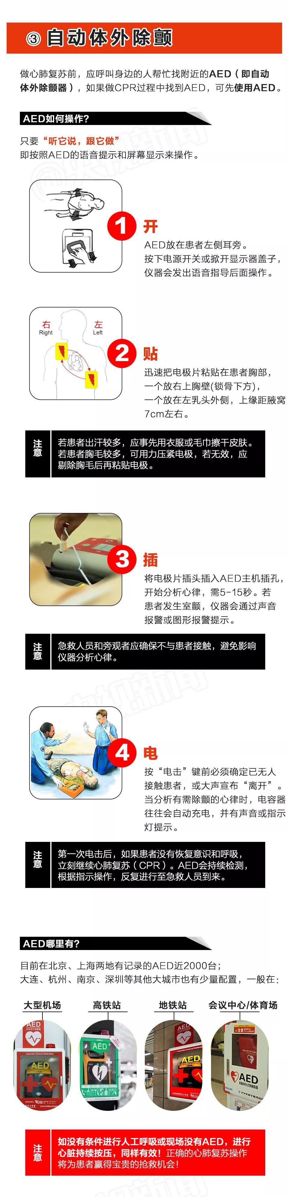 AED(自动体外除颤仪)可通过电除颤,帮心颤病人恢复心律。