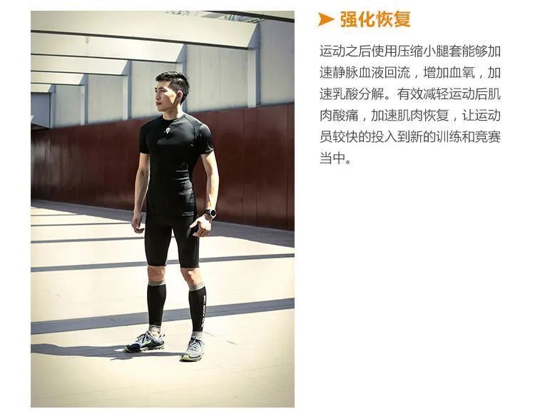 URG压缩腿套2.0 能够有效增加从脚部到心脏的静脉血液回流,减少乳酸在肌肉的堆积,在耐力运动中的表现极佳。同时,腿套还能加强血液输氧能力,提供肌肉力量,减少抽筋和受伤的可能。在运动中能减少对血管和肌肉的震动和冲击,减轻疲劳感,加快恢复。模特粥粥