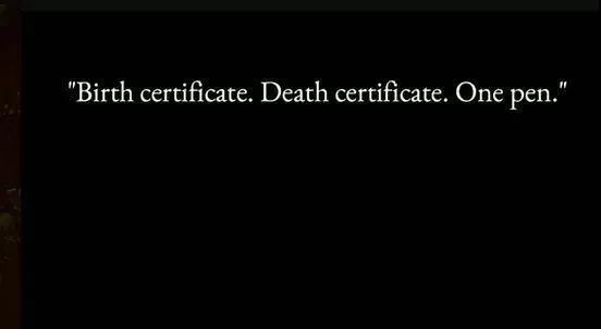 出生证明。死亡证明。同一支笔写完。
