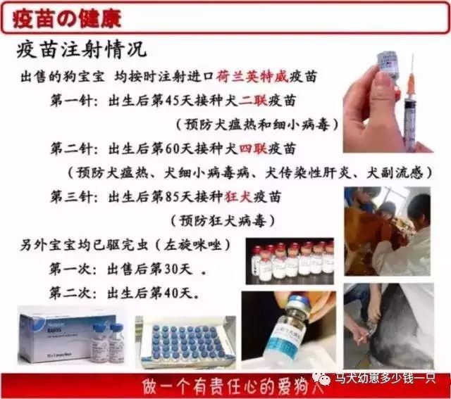 疫苗均已接种荷兰英特威进口疫苗.我们的狗宝宝出生25天注射2联荷兰英特威疫苗和驱虫,30天注射狂犬疫苗,45天注射4联英特威疫苗和驱虫,75天注射6联荷兰英特威6联疫苗和驱虫,保证纯种健康,全场数百条种犬均由国内外引进,品质优良,专业喂养,精心繁殖,血统纯正,毛色好,品相好,现有宝宝出售,每个品种的狗宝宝有1-3窝可以选择,一整窝的宝宝任您挑选,我们每窝宝宝的爸爸妈妈您都可以看到,再也不用为品种问题而担心。本犬业公司负责人以诚信经营为本,信誉第一为原则,保证您满意为宗旨。选择了我们您就选择了放心!本犬场有40多个品种的幼犬,由专业人员为您详细介绍,给您推荐饲养最好的品种,做到让您100/100满意!