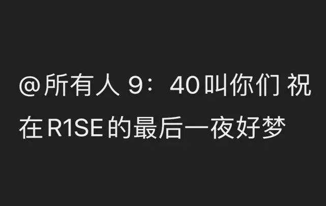 另外,姚琛还爆料在毕业之夜的前一晚经纪人发的那句“祝你们在R1SE的最后一夜好梦”还被他们所有人转发到了PYQ里。R1SE是一个不爱发PYQ的团,这样一个举动也说明了他们是真的很舍不得R锥子脸网络红人1SE。