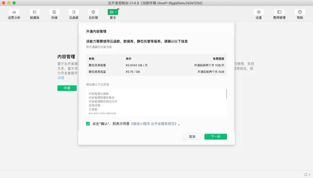 3、点击上我的古怪高中2面的「云开发」按钮进入云开发控制台