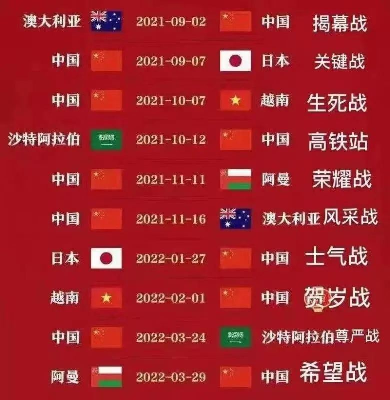 目前,国足对阵时间也已经出炉