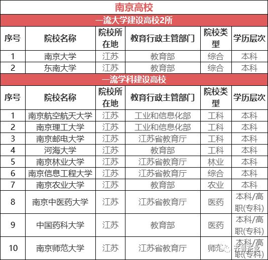 南京的大学很多,江苏省11所“211工程”重点大学有8所都在南京。它们是南京大学、东南大学、南京理工大学、南京航空航天大学、河海大学、南京师范大学、中国药科大学和南京农业大学。其中,南京大学、东南大学是“一流大学”建设高校。寻乌房屋出租