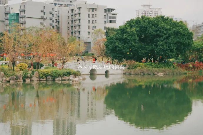 在这里没有熙熙攘攘的人群,安静得仿佛是一座闹市中的“市外桃源”,偶尔只有鸟儿掠过湖面,让人觉得一切都那么美好。