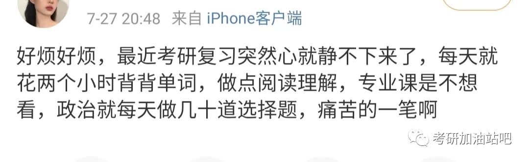无论是政治还是英语还是专业课,都得有大致的计划了。不然到快考试时,都觉得自己进度很慢,没怎么复习,除了少数心态真的特别好的人以外,其他同学面临这种情况心态大概率都会崩。