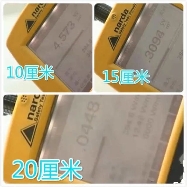 不信你看,距离台灯10厘米时,辐射值是4.5;15厘米时就锐减到了0.3,完全在安全范围了。