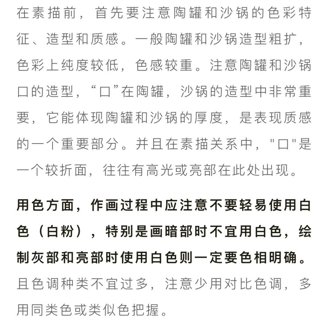 1、深色罐子受光面没有我们想象的暗,重的地方是暗部的明暗交界线,“口”在陶罐中非常重要,它体现了陶罐的厚度,是表现质感的重要部分。'口'是有厚度的,所以高光在罐口比较亮。