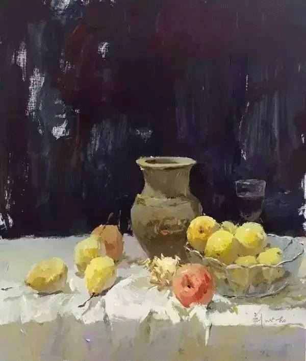 4、怎么表现质感,色彩的纯度、环境色的强弱等都有关系,表现陶罐时色彩纯度要降低,用色要厚重,用笔要果断。