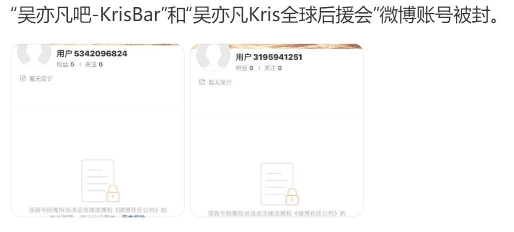 除了吴亦凡自己,甚至还有各大的粉丝后援会官方微博,都已消失。