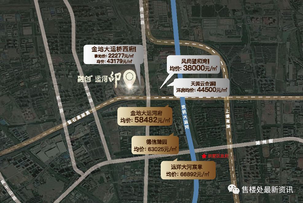 目前,距离运河印1公里左右的大河宸章、运河宸园等楼盘的二手房价已达60000元/㎡上下,周边地价23558元/㎡。