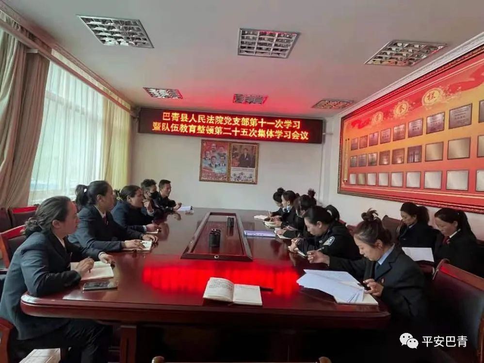 8月4日,巴青县人民法院召开第十一次学习暨队伍教育整顿第二十五次集体学习会议要求:全体干警要认真学习总书记的重要讲话精神,联系实际学、学深悟透、入脑入心;要把深入学习和贯彻落实习近平总书记在庆祝中国共产党成立100周年大会上的重要讲话精神和自治区九届十次全会精神、总书记在西藏考察调研时的重要讲话精神作为当前和今后一个时期的重要学习任务,认真贯彻党中央决策部署,坚持党的全面领导,自觉把总书记的讲话精神和全会精神贯彻落实到工作全过程,确保各项工作按照总书记的要求蹄疾步稳有效推进。