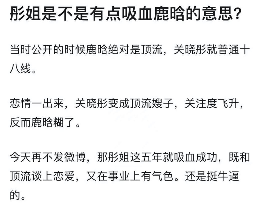 再者,我也并不觉得关晓彤有在吸血或抛弃鹿晗。