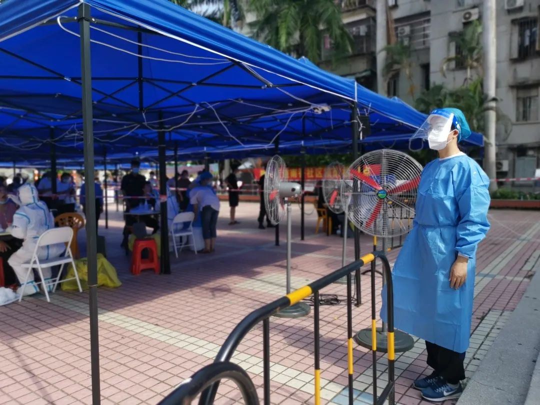 王秋琳是一位刚入职一年的年轻教师。在她负责支援社区核酸检测的当天早上,她早早到达昌平社区公园的检测点,穿好防护服,戴上面罩,跟大家说,“防护服就是我的战袍”。烈日炎热下,她维持秩序、测量体温,耐心帮助市民做好检测准备工作。面对2G网络、忘记手机开机密码等特殊情况,她像平日辅导孩子们一样,一步一步帮助老人操作,并微笑地安抚市民情绪。在人手需求量增加的情况下,她再一次说,“我还可以支援!”简单的午餐过后,她立即投入到下午的工作中。当天,王秋琳不停地要求“加时”,完成了长达12小时的志愿者服务工作。脱下口罩和防护服的她已被汗水浸湿,但她却说:“我年轻,不怕累。我也想为这次香洲抗疫贡献自己的绵薄之力!”