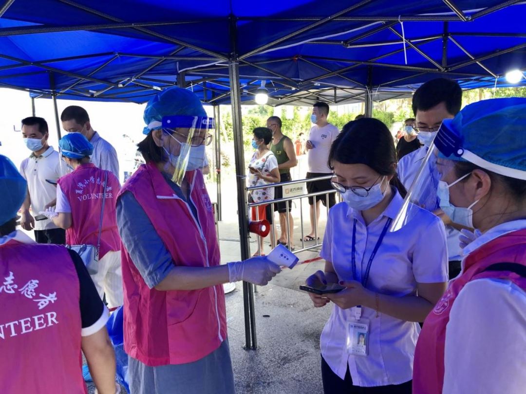 8月4日起,夏湾小学的教师志愿者除了支援社区核酸检测,还开始分批参加封控区的24小时倒班制轮值工作。党员教师、行政、青年教师首当其冲,多次参加值守;教师家属主动报名加入值守队伍;年轻妈妈、临退休的老教师积极响应,尽心服务。每批连续工作6小时,老师们拿出了平日教书育人的耐心和韧劲,克服“起早摸黑、烈日酷暑、通宵熬夜”的困难,不停地登记信息、答疑解难、点餐送餐,尽职尽责……