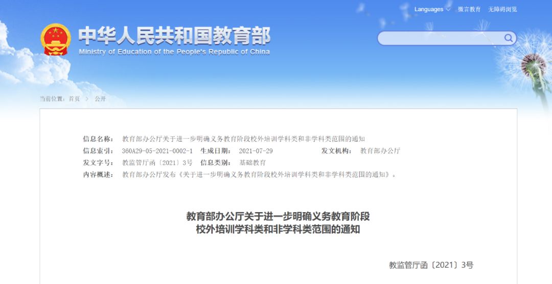 为贯彻落实中共中央办公厅、国务院办公厅印发的《关于进一步减轻义务教育阶段学生作业负担和校外培训负担的意见》,指导各地做好校外培训(包括线上培训和线下培训)治理工作,现就明确义务教育阶段校外培训学科类和非学科类范围通知如下: