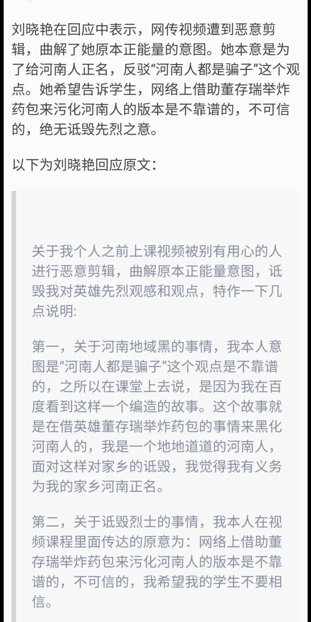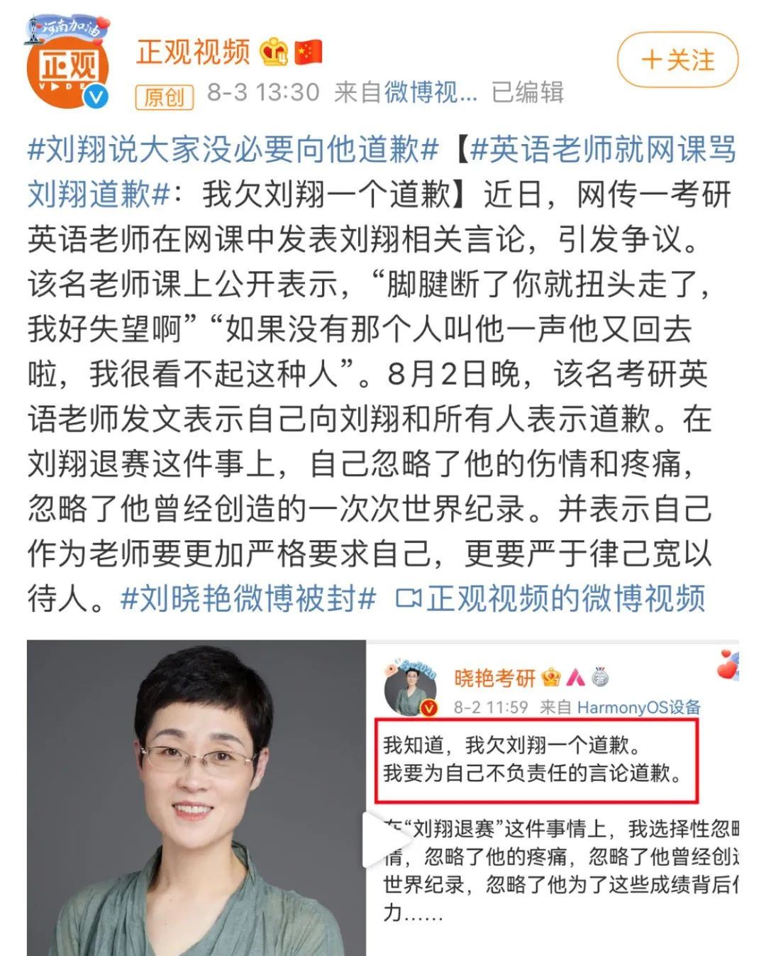 似乎是和此前课堂一段视频关于刘翔的评价有关。