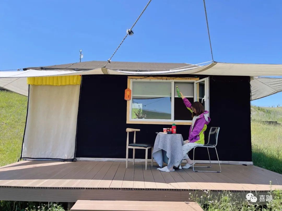 所以第二天的营地星空房,变成了整个旅途中最难受的一天。暴晒的太阳导致白天不能入住,仍然不敢轻易上厕所,不管什么需求前台的客服回复永远是不好意思请自行处理,营地所谓骑马射箭热气球篝火晚会项目其实也没有真正启动起来……强颜欢笑地发了一条朋友圈,因为特别想念所有爱喝的奶茶咖啡。至于原计划的草原上各种拍照,抛开冷飕飕的天气原因不说,我们只想躺平。后悔,难熬。
