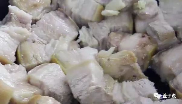 炒锅里头再放上点食用油,不要放得太多,太多了会显得油腻,用中火把油温烧到5成热的时候,就可以把刚刚焯烫过水的五花肉放到锅里头,煸炒几下,煸炒的时候要用中小火,这样可以把肥肉里面的油脂,慢慢的煸炒出来。