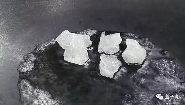 接下来我们就开始炒糖色了,在一个炒锅当中少放上一点食用油,然后放上几块冰糖,用勺子把冰糖都全部敲碎,在炒糖色的时候一定要全程小火,千万不要用大火,