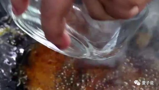 等到锅里头的冰糖全部融化,并且被炒成棕红色起了大泡的时候,稍稍加上一些清水,用勺子和搅均匀,这样糖色就炒制好了,看起来颜色非常的红亮,然后我们就可以把炒好的糖稀,盛入一个碗中备用。
