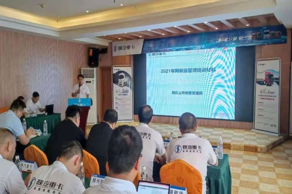 其次,陕重汽销售公司南宁办服务经理赵海刚深度解读了三季度服务活动促销政策,对陕重汽广西区域2021年中服务做了总结。陕重汽销司销售部高鹏举对陕重汽二级网联店开发及政策做了详细解读。