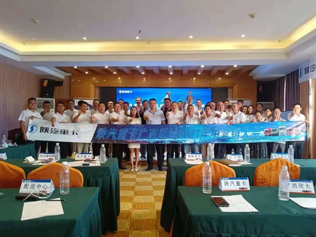近日,以“目标导向 产品引领 模式创新 迈向高端”为主题的陕汽重卡广西区域2021年年中营销大会在广西北海隆重召开。陕重汽销司广西区域总经理崔少杰、陕重汽销司南宁办服务经理赵海刚、陕重汽销司广西区域综合经理姜娜、陕重汽销司广西区域产品经理任帅坤、陕重汽销司广西区域销售经理李晶、陕重汽销司广西区域运营经理王亮、陕重汽销司销售部高鹏举、服务部杨明、潍柴动力广西区域总经理张学修、法士特、西康、配送中心山重、德银、河南骏通以及一级渠道经销商共40余人出席本次会议。
