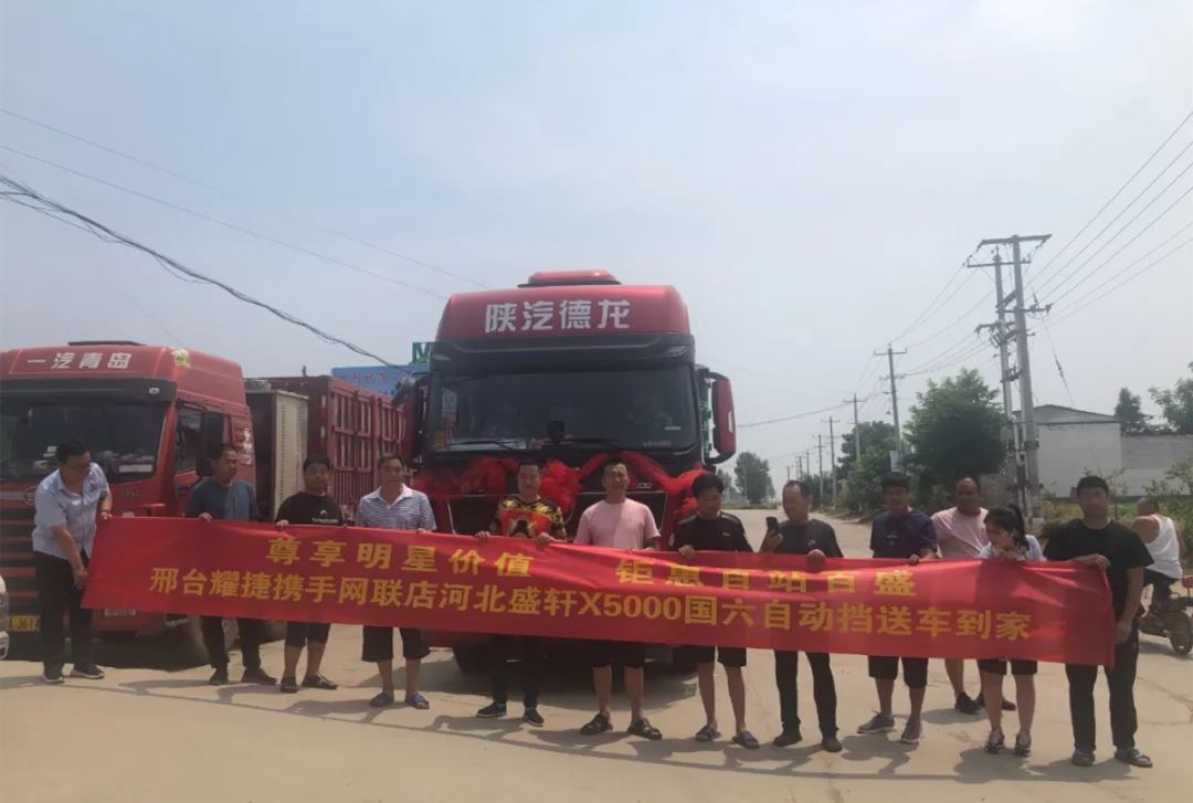 为了彰显陕汽客户的尊贵,让客户了解陕汽的高品质服务,陕汽重卡石家庄办事处携手邢台耀捷在网联店河北盛轩举办了一场以“尊享明星价值 钜惠百站百盛”为主题的X5000国六自动档送车到家活动。