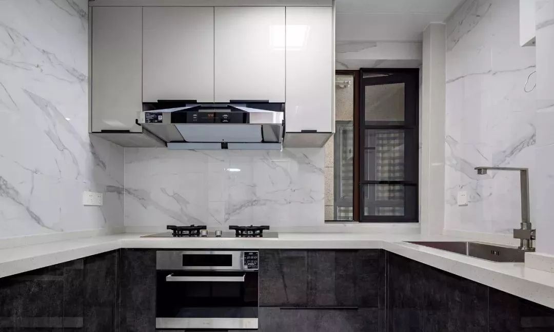 黑白灰色熊良霄调的厨房,时尚质感。U型橱柜设计,动线更合理。
